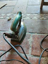 vendo ferro da stiro, acquistato nel 78, ancora funzionante. La parte in metallo presenta parti ossidate, la parte terminale del cavo elettrico è stata sostituita con una aggiunta (come da foto). Messo in corrente, si riscalda in 1 minuto.