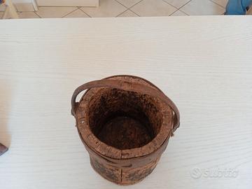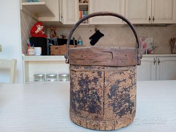 Porta latte in sughero con rifiniture in legno e ferro da stiro a fuoco, periodo 150 anni fa