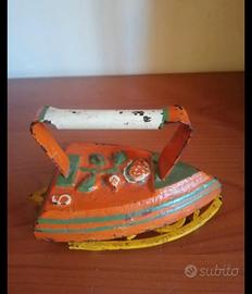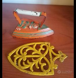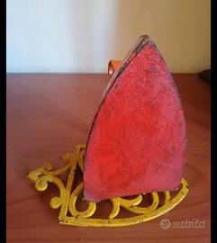 Ferro da stiro da collezione in ferro dipinto con base lavorata sempre in ferro. Pesa 2 chili e 600. Toni del l'arancio e giallo. Acquistato un un mercatino di antiquariato. Spedisco