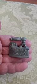 Ferro da stiro miniatura in peltro vintage collezione materiale pregiato peltro pesante finitura opaca stile riproduzione fedele antico ferro a carbone dettagli ottima fattura artigianale senza marchio patina epoca condizioni eccellenti come da foto