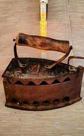 Ferro da stiro antico ghisa a carbone con manico in legno vintage. Appena ritrovato nella casa di campagna della nonna😍