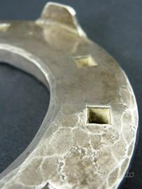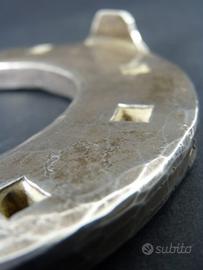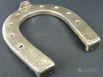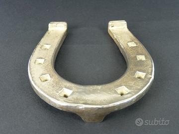 Originale e rara scultura in Argento massiccio pesante, completamente battuto a mano a formare un ferro di cavallo.