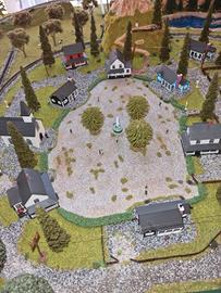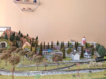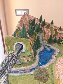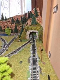 modellismo ferroviario circuito con gallerie ,con due treni elettrici e vagoni ,tutto funzionante con proprio comando regolatore di velocita'per andare avanti e indietro... comprese nel kit anche le macchinine ancora da sistemare a piacimento.impossibile spedire perche' delicato...solo ritiro o se non lontano posso trasportarlo di persona.