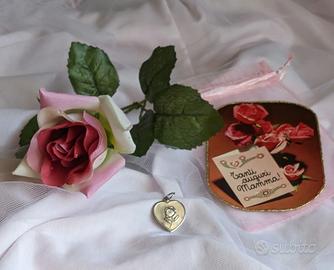 Ciondolo medaglia cuore "Festa della mamma" + rosa