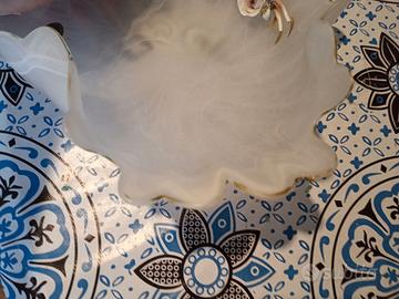 ff. OPENLINE = Decoro CentroTavola o Vassoio o Soprammobile, vari usi possibili, anche vassoietto porta leccornie x pause Tè caffè aperitivo altro, da tempo in esposizione in taverna (NON SO SE IL BORDINO SI E' UN PO' SCOLORITO, O SE E' NATO COSI, VALUTA...), in buone/discrete condizioni, a 5€,. anche consegna a mano,. ho anche altri annunci,.