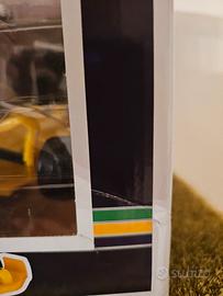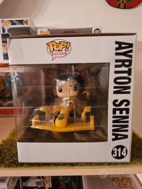 Vendo dalla mia personale collezione Funko Pop! Rides dedicato ad Ayrton Senna, numero 314. La figura rappresenta il pilota con la sua iconica monoposto Lotus gialla.