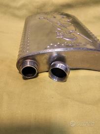 Borraccia fiasca in acciaio inossidabile con un design in rilievo di un soldato che marcia. Articolo primi anni '70