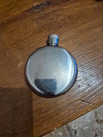 Piccola fiaschetta da tasca vintage circolare in acciaio con logo della rinomata casa BRANCA in ottone nessun difetto
