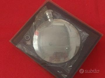 Vero affare! Vendo bellissima fiaschetta da tasca in acciaio inossidabile, caratterizzata da un elegante design circolare e una finitura a specchio di alta qualità. Il prodotto è completamente nuovo, mai usato, ancora protetto dalla sua pellicola originale e riposto nella scatola di presentazione con inserto in velluto nero. Dettagli principali: Materiale: Acciaio Inox (facile da pulire e non altera i sapori). Design: Forma tonda moderna ed ergonomica, perfetta per essere portata con discrezione in tasca o in borsa. Accessori inclusi: Pratico imbutino in acciaio coordinato per un riempimento semplice e senza sprechi. Stato: Nuovo, mai tirato fuori dalla confezione originale. Perché acquistarla? È un accessorio di classe, perfetto per amanti dei liquori, escursionisti o come idea regalo elegante e senza tempo. La confezione originale la rende pronta per essere impacchettata e regalata.