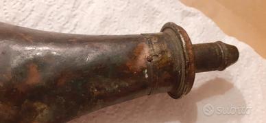 Antica fiaschetta porta polvere da sparo in rame, di probabile fine '800, con meccanismo di apertura ancora funzionante.