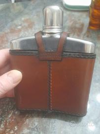 fiaschetta anni 70 in vetro /inox e custodia in vera pelle