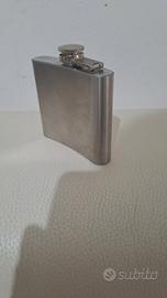 L'oggetto è una fiaschetta Vintage in acciaio inox con lo stemma della Svezia e la scritta "SWEDEN".