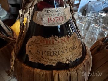 Fiasci Chianti impagliati originali degli anni ‘70. Vendo a 25 euro ciascuno o scotati se acquistati tutti e 4.
