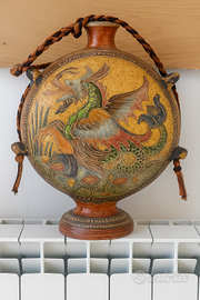 Splendido fiasco ornamentale in terracotta smaltata e dipinta a mano, realizzato a Montopoli in Val d’Arno (Italia), firmato e numerato “R. Pucci – Montopoli Italia – 255”.