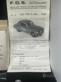 F.D. S. - AUTOmodelli METAL KITS SCALA 1: 43 PER COLLEZIONISTI N. 6 - FIAT 1100 S. MM - 1947 METAL KITS SCALA 1/43 L'esordio vittorioso della 1100 S avviene alle Mille Miglia del 1948 dove questa vettura arriva seconda, terza e quarta nella classifica generale. Motore 1100 S - 4 cilindri in linea - Cilindrata cc 1089 - Velocità max. 150 Km./h. Colore: Rosso. IN PROGRAMMA: FRANCESCO DE STASIO VIA CINTIA PARCO S. PAOLO, 12 - 80126 NAPOLI - ITALIA
