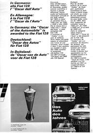 BROCHURE ORIGINALE DELLA FIAT 128 1° SERIE RACCOLTA STAMPA DEI PREMI OTTENUTI IN EUROPA COME VETTURA DELL'ANNO 1970 STAMPATO n° 3043 COMPOSTO DA N° 20 PAGINE DIMENSIONI: cm 33x24 IN BUONE CONDIZIONI.