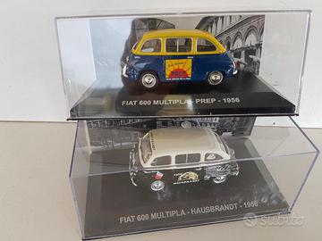 N°6 modellini pubblicitari su Fiat 600 Furgone e Multipla in scala 1:43, NUOVI nelle loro teche di plastica: