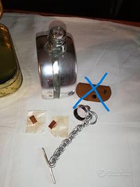 Vendo Bottiglia pubblicitaria FIAT in vetro e alluminio dim. diametro 12 cm e spessore 7 cm, nuova vendo a 60 € ; Scatola di latta pubblicitaria FIAT dim. 23×19 e altezza 5 cm vendo a 30 n. 2 spille FIAT dim. 1×1,5 cm, nuove vendo a 10 euro caduna. Tutto in blocco vendo a 115 €. Vendo anche singolarmente.