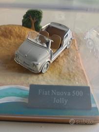 Diorama modellino Fiat nuova 500 Jolly in scala 1/43, collection fascicoli Hachette.