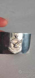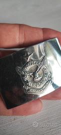 L'immagine mostra una fibbia di una cintura, probabilmente di tipo militare o paramilitare, con l'emblema dell'Aeronautica Pakistana (Pakistan Air Force).Al centro dell'emblema è presente un'aquila, sopra la quale è visibile una stella e la scritta "PAKISTAN".Sotto l'aquila, è presente la scritta "AIR FORCE".