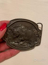 Fibbia per cintura vintage con orso grizzly, prodotta dalla Siskiyou Buckle Co.