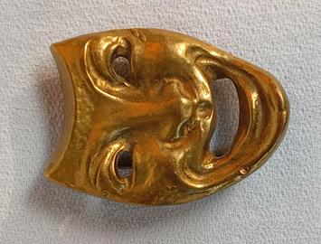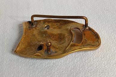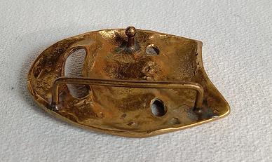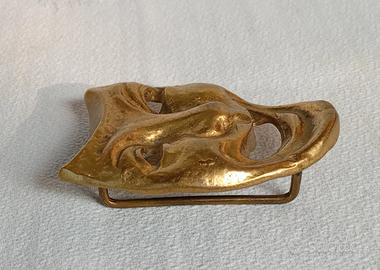Fibia in ottone vintage, un accessorio unico per la tua cintura. - Design a maschera teatrale Greca - Finitura anticata che ne esalta il fascino retrò. - Dettagli curati che richiamano l'arte classica. -Misura cm. 7 X 5,5