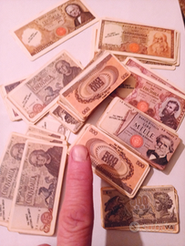 500 , 1000, 2000, 5000, 10000, 50000, 100000 lire plastificate in ottimo stato in blocco