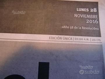 Giornale Originale della morte di Fidel Castro - Fidel Castro è morto il 25 novembre 2016 alle ore 22,29 di Venerdi' all'eta' di 90 anni. Verra' cremato secondo i suoi desideri - 9 giorni di lutto Nazionale - I funerali si svolgeranno a Santiago de Cuba il 4 Dicembre 2016 - ORIGINALE CUBA Juventud Rebelde Lunes 28 noviembre 2016 - Integro - pagine 8 -