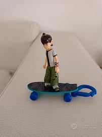 L'immagine mostra una action figure di Ben Tennyson, il protagonista della serie animata "Ben 10", su uno skateboard. Oggetto Vintage esclusivamente amatoriale personale.