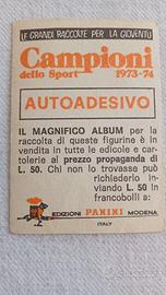 Figurina Campioni dello sport Panini 1973/74 MAI ATTACCATA In ottimo stato, come è visibile da foto