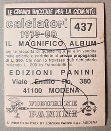Figurina Calciatori Panini 1979-80 n° 437 RIVERA. Con velina, in ottimo stato solo segno di biro sulla velina (vedi foto).