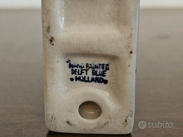 Bellissima coppia di figurine in ceramica olandese, dipinta a mano, Delft blue, soggetto due bambini che si baciano.