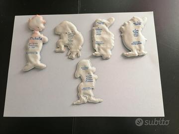 Erano realizzata in plastica piatta da attaccare con il sapone sui vetri, in regalo in ogni confezione.