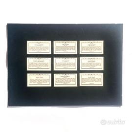 Rara e divertente collezione di nove ritratti vintage, le figurine erano contenute gratuitamente nei pacchetti di sigarette. Queste in particolare fanno parte della serie "Who Is This?" prodotta dalla Ardath Tobacco Co. Ltd. negli anni '30. Montate su cartoncino rigido con dietro le descrizioni degli attori sono pronte per essere incorniciate. In ottime condizioni Misure 25 X35