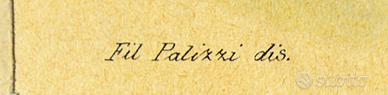 L'incisione è firmata “F. P. inc.” in basso a destra, segno che si tratta di una stampa ottocentesca a tiratura multipla, realizzata con fine tecnica incisoria e successiva colorazione a mano.