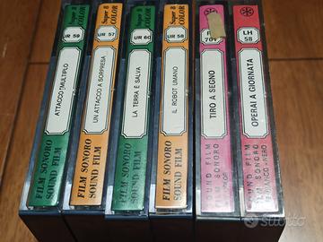 6 filmini super 8 sonori, i titoli che vedete in foto. Vendo solo in blocco.