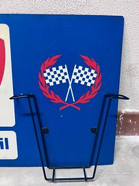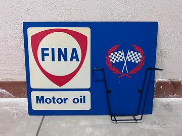 Cartello pubblicitario Fina Motor Oil in plastica dura, leggermente flessibile. Con cestello contenitivo in metallo.