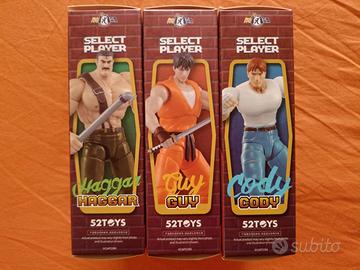 Final Fight Toys CAPCOM - 3 personaggi collezione Final Fight Toys Capcom 3 confezioni Giocattoli per collezionisti del videogioco di Final Fight della Capcom collezione completa. Personaggi del gioco principale: Haggar, Cody e Guy Ricerche Console: Atari, Commodore Amiga, Play Station, psx, Nintendo, NES, Super SNES Mega drive, Game boy
