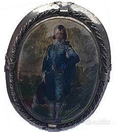 antica - vittoriana - dipinta a mano in argento sterling Gainsborough "blue boy" abbastanza raro