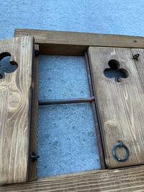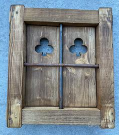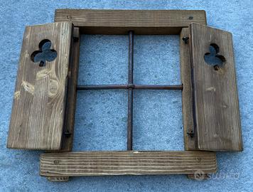 Deliziosa finestrella decorativa realizzata a mano, perfetta per aggiungere un tocco rustico e romantico alla tua casa. Gli scuri presentano un'intagliatura a forma di cuore. - Design artigianale unico. - Dettaglio a forma di cuore sugli scuri. Dimensioni 50x45x6cm
