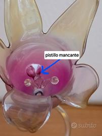bellissimo fiore in vetro soffiato di Murano marca parisevetro made in italy, oggetto raro da collezione. unico difetto praticamente invisibile manca un pistillo all'interno del fiore, ma l'oggetto è in perfette condizioni alto circa 25 cm, anno 1998 . consegna a mano su Genova spedizione in tutta Italia.