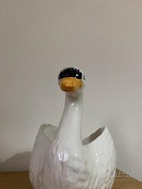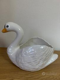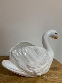Fioriera portavaso o centrotavola o portafrutta a forma di bellissimo cigno in ceramica di Bassano (come da marchio