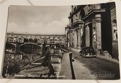 Originali cinque cartoline raffiguranti Firenze tutte affrancate e spedite: Lungarno degli Archibusieri spedita 13.6.54; Panorama dal Giardino di Boboli spedita 23.2.56; Panorama spedita 9.5.54; Piazzale Michelangelo e Panorama spedita 28.6.54; Panorama spedita 5.12.53. Misura 15x10.