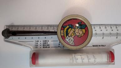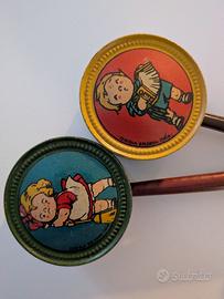 - due con disegni su fondo giallo e scritta Made in Italy su entrambi i lati; buono stato; h 98mm