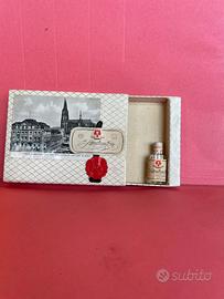 Scatola originale Johann Maria Farina Original Eau De Cologne Genuine con all'interno un piccolo flacone ancora contenente colonia.