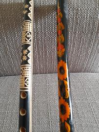 Vendo due flauti ornamentali in legno, uno nero intagliato a mano, e l'altro dipinto a mano in ottime condizioni a 10 euro