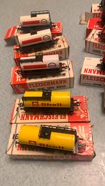 Fleischmann Carri Merci Fs Db Ho Fleischmann Carri Merci Fs Db Ho. In buone condizioni ..pochi segni del tempo; alcune cisterne son in metallo. Tutte con le scatole originali meno di 20 euro cad in blocco ;
