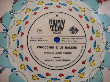 Raro disco animato 78 giri in vinile flessibile Mamil sistema Moviton, bifacciale con due canzoni di Pinocchio