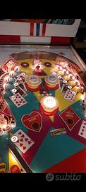 Piano rifatto , cassone rifatto , plastiche rifatte , nuovi bersagli , elastici nuovi , luci sostituite (piano di gioco sopra e sotto + testa), gambe nuove , side rail , lock bar , sportelli lucidati , revisionato interamente .