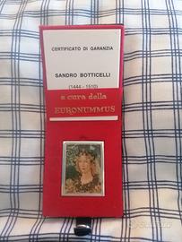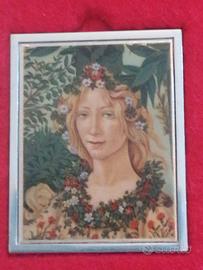 Primo piano di Flora, particolare del famoso dipinto La Primavera di Sandro Botticelli ( placca in argento 925 peso circa 17 grammi) copleta di scatoletta e certificato originali.